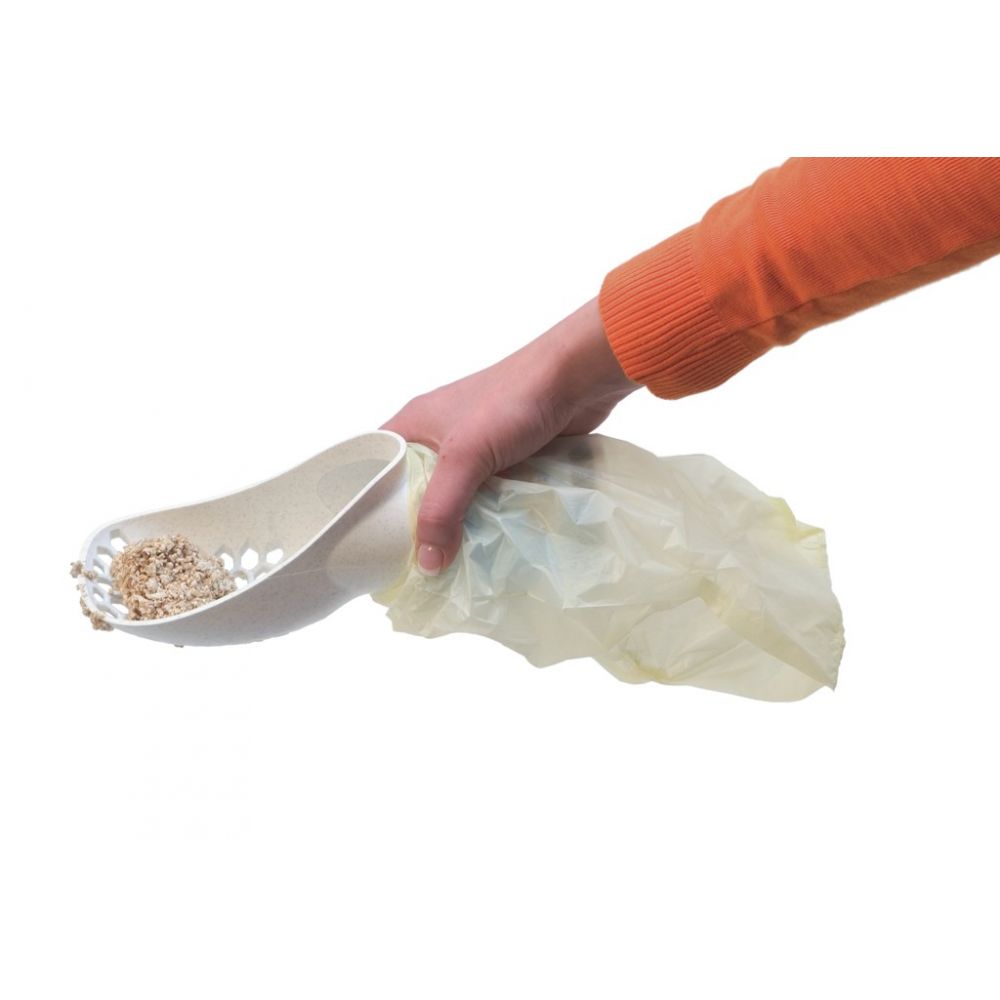 Nowa łopatka do żwirku z woreczkami, która sprawia, że sprzątanie jest szybkie i łatwe. Po prostu zgarnij odchody zwierząt domowych i przechyl je do worka. Wyczyść kuwetę kota jednym prostym ruchem. W łopatce znajduje się 25szt wymiennych woreczków. Rozmiar: 26x9,5 cm