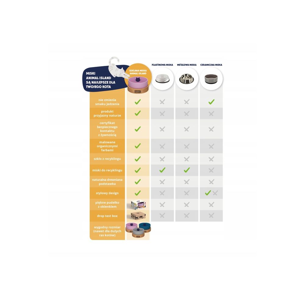 Rozmiar miski jest dostosowany do potrzeb Twojego pupila, zastosowane materiały są dla niego całkowicie bezpieczne (co potwierdzamy certyfikatem) i nie zmieniają smaku ani zapachu jego ulubionych posiłków.