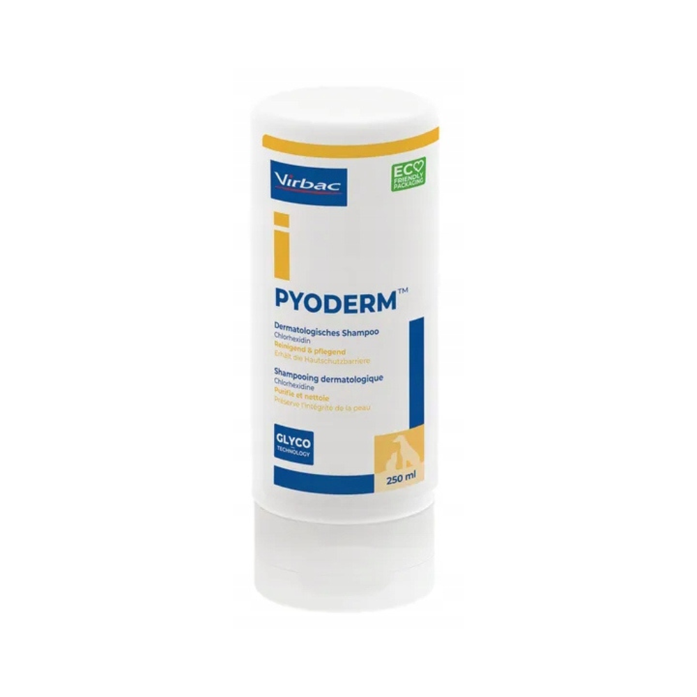 Szampon Pyoderm jest szczególnie zalecany jako środek wspomagający przy infekcjach bakteryjnych i grzybiczych skóry, w szczególności powierzchownego i głębokiego, ropnego zapalenia skóry (pyoderma).
