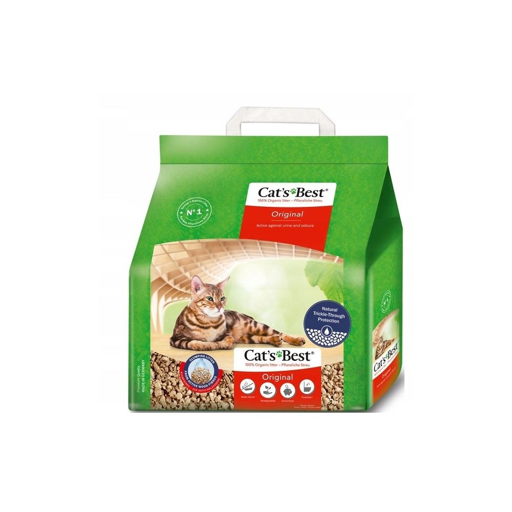 W 100 % naturalny, ulegający biodegradacji: Żwirek Cat's Best Eco Plus jest jedynym żwirkiem, który ulega biodegradacji, można go po prostu wysypać do kosza z odpadami biologicznymi lub usunąć w toalecie (prosimy zastosować się do regionalnych przepisów pozbywania się zanieczyszczeń)