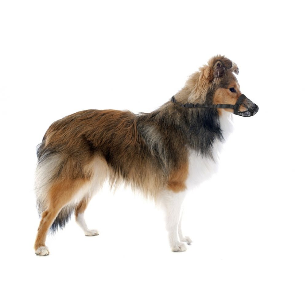 Ten kaganiec został zaprojektowany, aby uniemożliwić psu połykanie zatrutych przynęt lub innych rzeczy podczas spacerów.