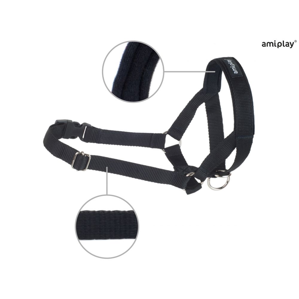 Górna część haltera obejmująca pysk psa jest obszyta wysokiej jakości gąbką aby nie powodować obtarć.