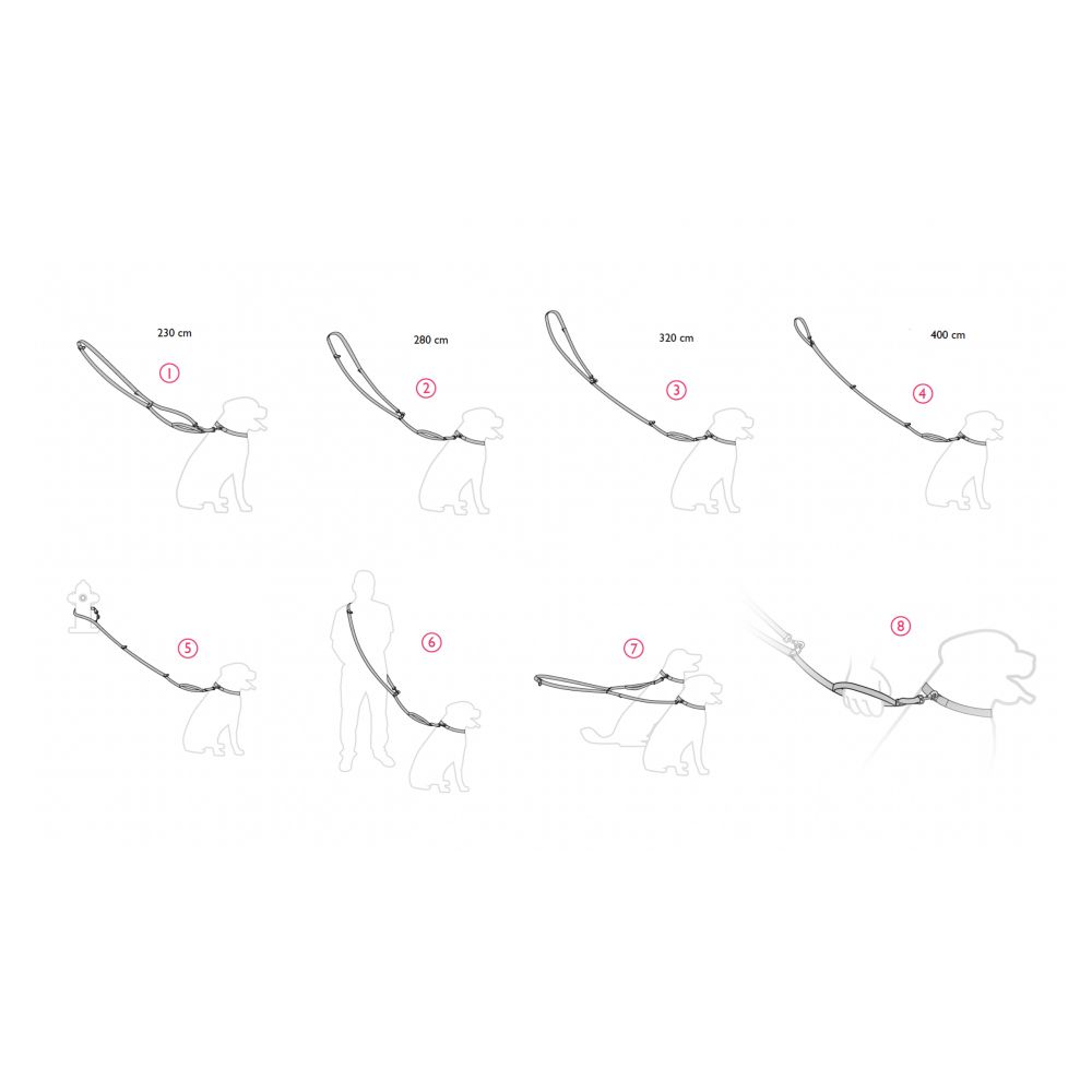 Smycz przepinana amiplay 8 w 1 pozwala na jej użycie na wiele różnych sposobów:
