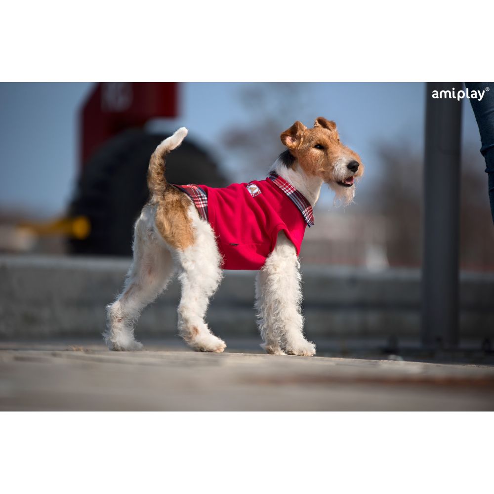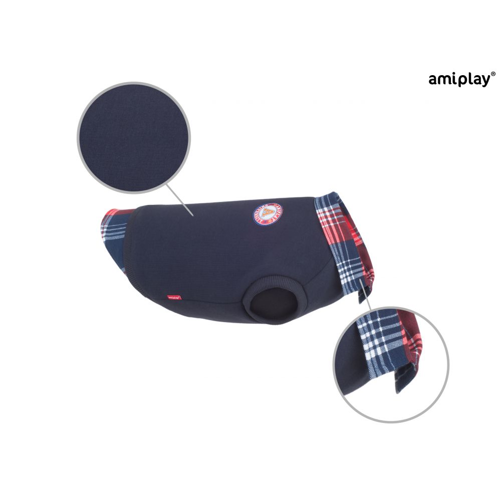 Bluza z kolekcji Amiplay Winston idealnie sprawdzi się nie tylko jako warstwa ocieplająca, ale przede wszystkim doda eleganckiego charakteru pupilowi, a jej modny i atrakcyjny wygląd wyróżni czworonożnego przyjaciela spośród innych napotkanych psów. Ubranko wykonane zostało z wysokiej jakości dzianiny dresowej, charakteryzującej się dobrą cyrkulacją powietrza, co pozwala w cieplejsze dni izolować od ciepła, natomiast w chłodne dni, doskonale ogrzewać z powodzeniem dbając o komfort termiczny w różnych warunkach. Całość podszyta jest materiałem w kratę, dzięki któremu wygląda jakby pupil miał założoną koszulę, a elegancki kołnierzyk dodaje całości szyku. Ulubieniec będzie prezentował się w niej bardzo wyjątkowo na wspólnych wyjściach, a także psich imprezach. Produkty z linii Winston zakładane i zdejmowane są przez głowę psa. Elastyczność materiału, z jakiego zostały zrobione, sprawia, że wykonanie tych czynność jest bardzo sprawne i szybkie, a dodatkowo doskonale dopasowują się do budowy zwierzęcia. W górnej części znajduje się specjalny otwór, dzięki któremu w łatwy sposób można przypiąć smycz do obroży lub szelek pod ubraniem. Bluza jest bardzo przyjazna dla psiego ciała, nie powodując podrażnień, otarć ani wycierania sierści. Miękka i miła w dotyku, dzięki czemu pupil nie odczuwa żadnych niedogodności podczas używania. Jeśli w trakcie zabaw ubranko pobrudzi się, bez problemu można wyprać je w pralce. Produkt zaprojektowany i wytworzony w Polsce z dużą dbałością o każdy szczegół. To doskonały wybór dla właścicieli czworonogów, którzy cenią sobie modny wygląd nie tylko swój, ale i swojego towarzysza spacerów. Dzięki odpowiedniemu ubraniu dla pupila, każdy spacer będzie przyjemnością, bez względu na warunki atmosferyczne.