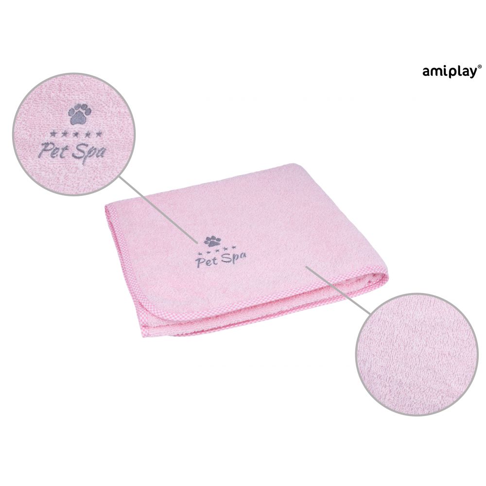AmiPlay Ręcznik Kąpielowy Dla Psa Spa Różowy Rozmiar XS