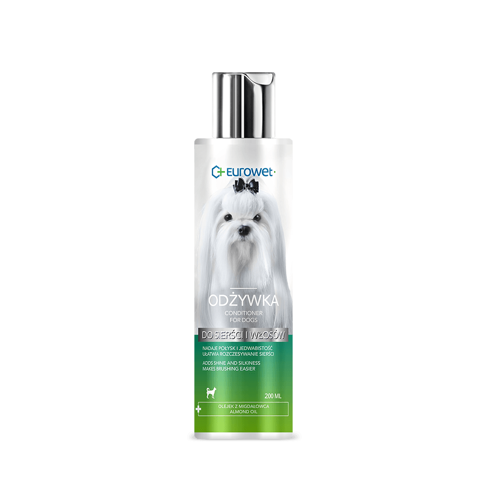 Kompletna pielęgnacja sierści to nie tylko czyszczenie szamponem, ale również odżywienie odżywką. Jej użycie sprawia, że pies prezentuje się znacznie lepiej. Eurowet Odżywka do Sierści i Włosów zawiera bogaty skład z dodatkiem olejku z migdałowca, dzięki czemu odżywia sierść, nawilża ją i sprawia, że jest znacznie łatwiejsza do rozczesania. Ponadto, nadaje sierści blask, miękkość i gładkość.