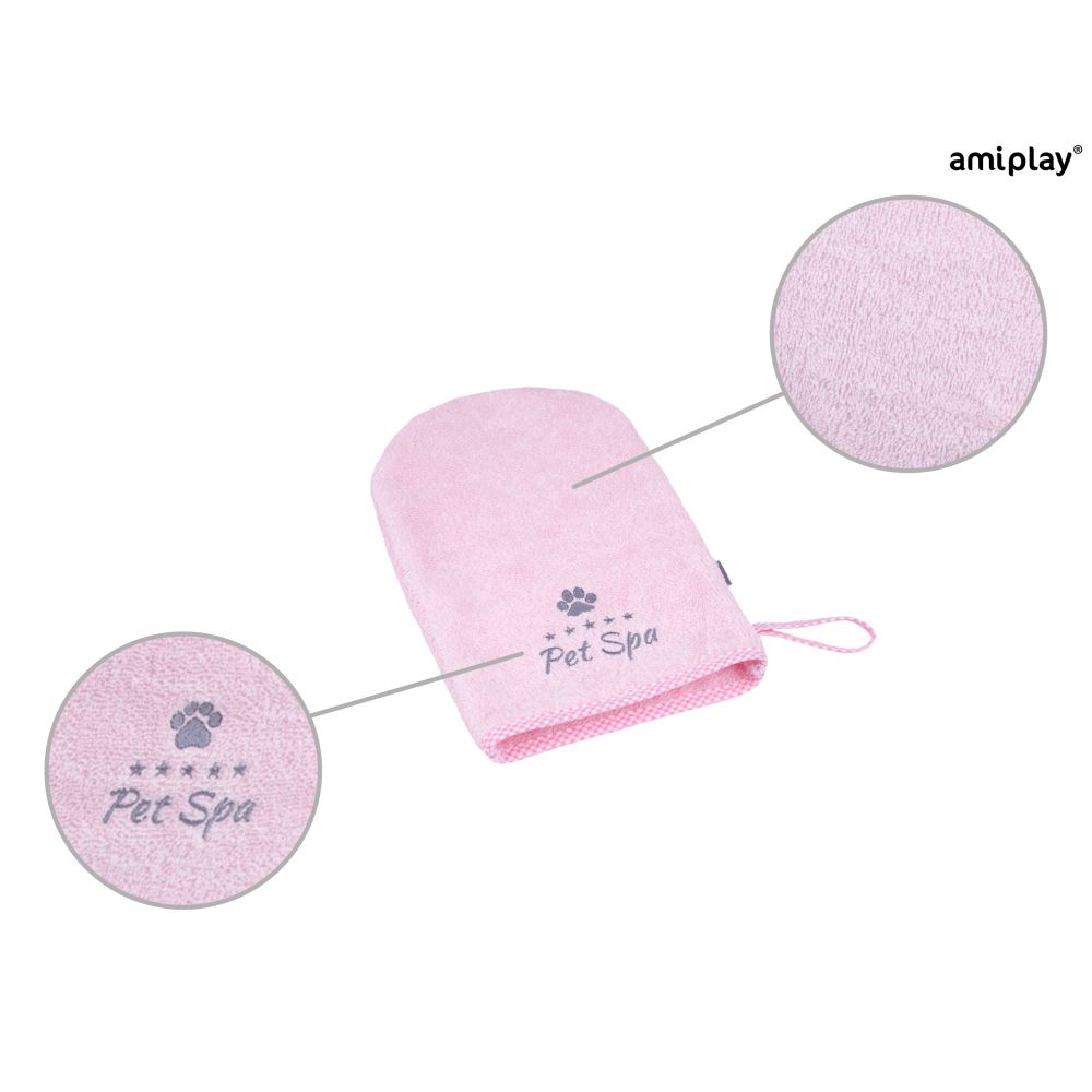 AmiPlay Rękawica Kąpielowa Dla Psa Spa Różowa Rozmiar L/XL