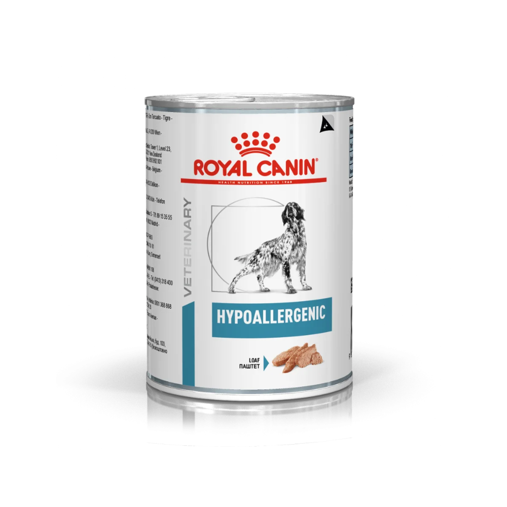 Royal Canin Hypoallergenic to dietetyczna mokra karma podstawowa stworzona specjalnie dla psów z alergią lub nietolerancją pokarmową oraz podczas zapalnych i przewlekłych chorób jelit. Zawiera wyselekcjonowane źródła białka i węglowodanów.