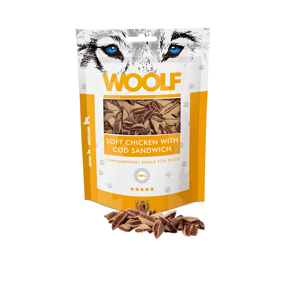 Woolf Soft Chicken With Cod Sandwich Kurczak Dorsz Przysmak Dla Psa 100 g (Numer produktu: 394)