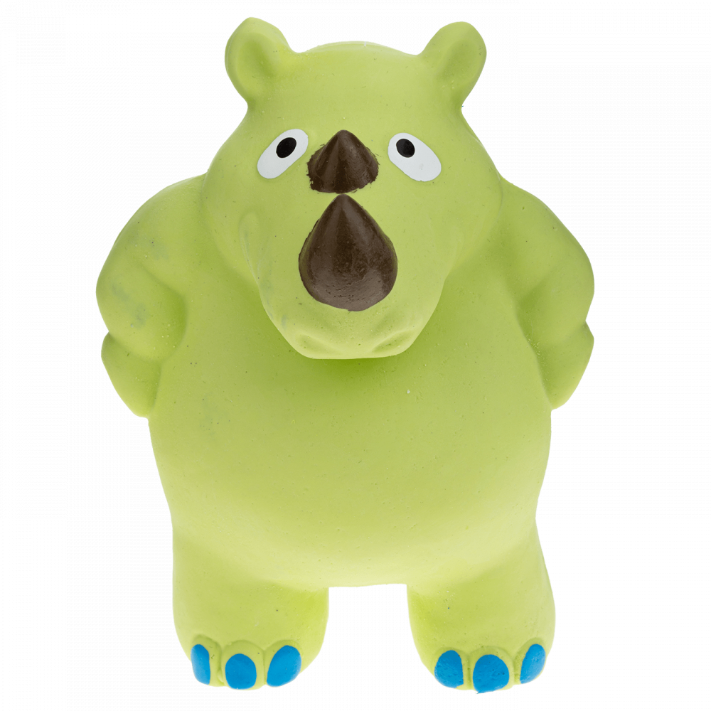 Gumowa zabawka w kształcie nosorożca! Piszcząc przy każdym naciśnięciu sprawi, że Twój pupil oszaleje na jej punkcie. Łatwy w utrzymaniu czystości materiał zapewni zabawę na długie dni! Kierowana dla małych i średnich psów. Nieregularna powierzchnia umożliwia psu łatwe chwytanie i przenoszenie zabawki. Wykonana z miękkiej gumy, idealnej dla szczeniaków.