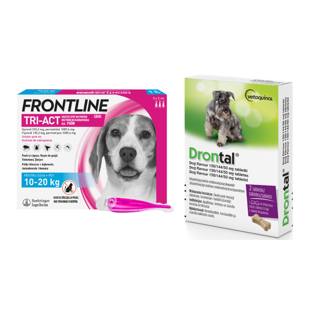 Pakiet Frontline Tri-Act dla Psów Średnich Ras M + Drontal Dog Flavour 2 Tabletki (Numer produktu: 20152)